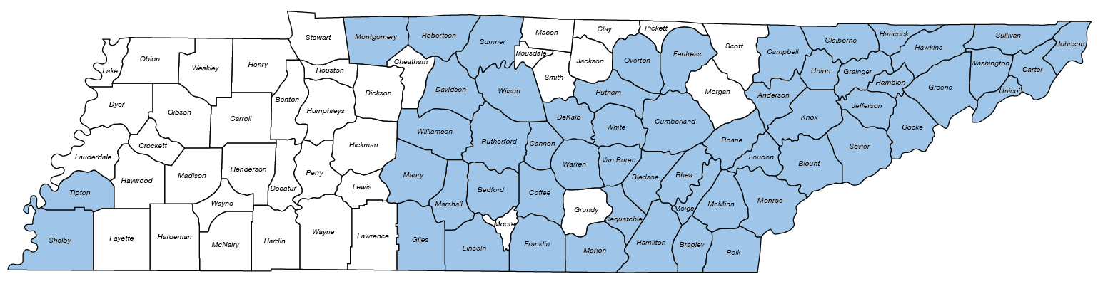 Our team is currently hard at work to offer our clients broad and reliable coverage across the State of Tennessee.